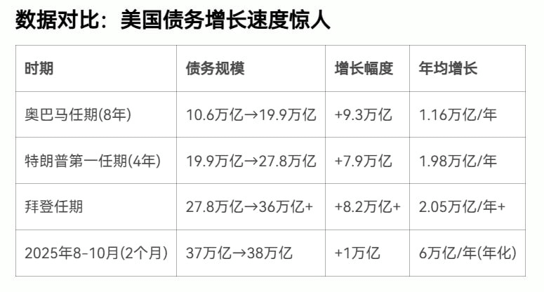 Terutama presiden-presiden terakhir, yang lebih merupakan “berpacu dalam pengeluaran”: Obama selama 8 tahun, utang meningkat dari 10,6 triliun menjadi 19,9 triliun, hampir dua kali lipat; Trump dalam masa jabatannya 4 tahun, langsung menambah 7,8 triliun, sampai 27,8 triliun; ketika Biden mengakhiri jabatannya, langsung melewati 36 triliun! Ini bukan “meminjam uang untuk hidup”, ini menganggap dunia sebagai mesin penarik uang, benar-benar dihancurkan!