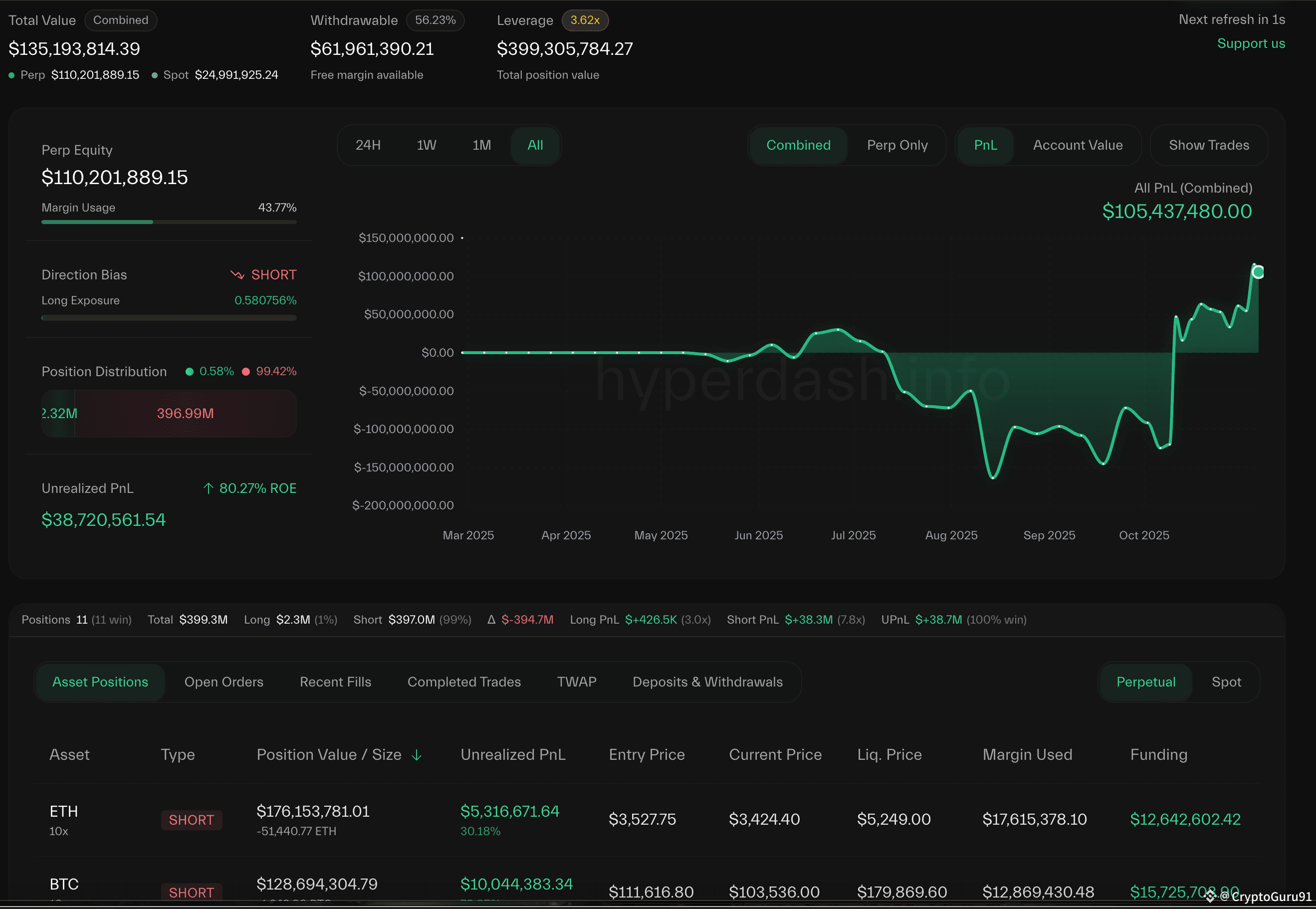 In a time when most traders struggle to stay profitable, one anonymous trader has just posted a jaw-dropping $105,437,480 total PnL — and the crypto world can’t stop talking about it.
