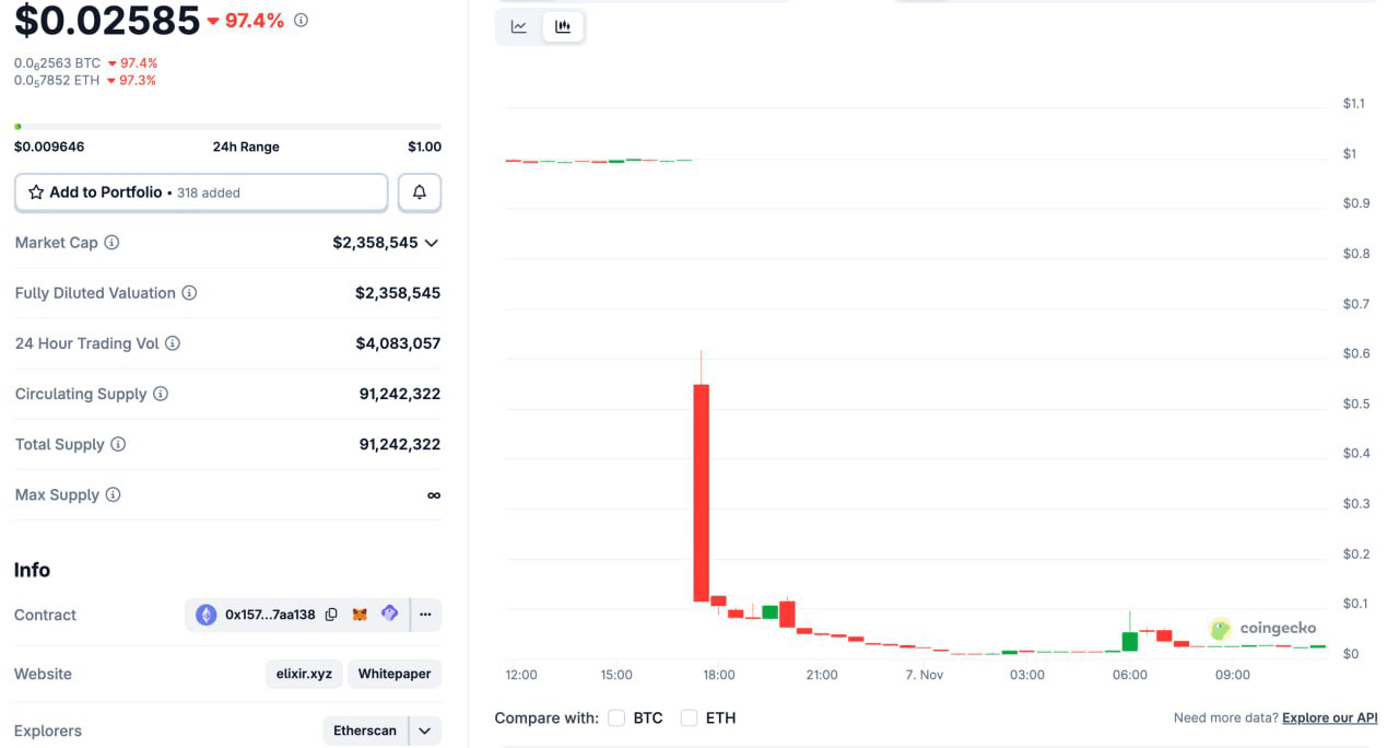 Salah satu kasus kejutan terakhir di dunia DeFi: stablecoin deUSD, yang diterbitkan oleh Elixir Network, kehilangan hampir seluruh ikatannya dengan dolar setelah pemberi pinjaman utamanya, Stream Finance, mengalami kerugian sekitar $93 juta.