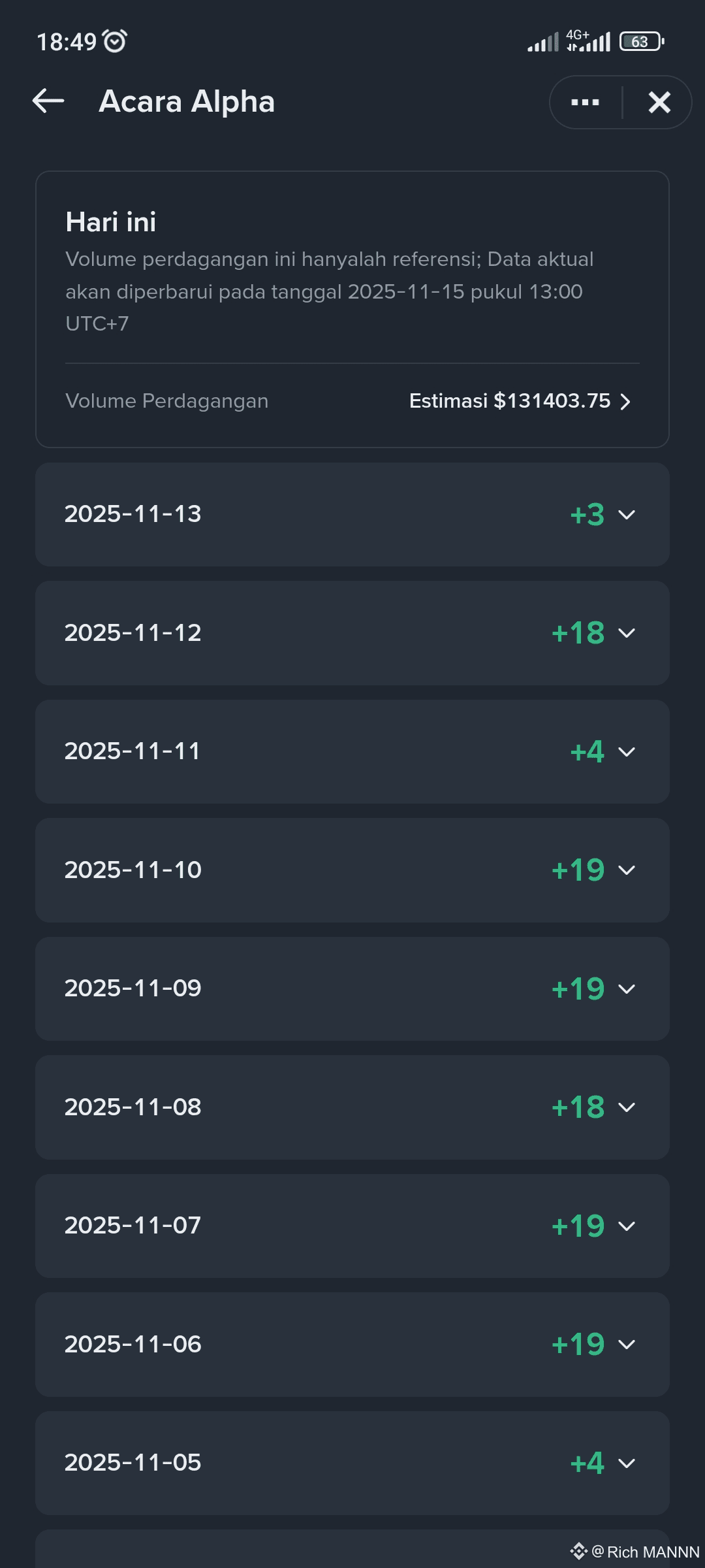 Beli atau hold token dari daftar Alpha (misalnya, aset low-cap baru di BNB Chain). Setiap aktivitas trading/holding beri poin: