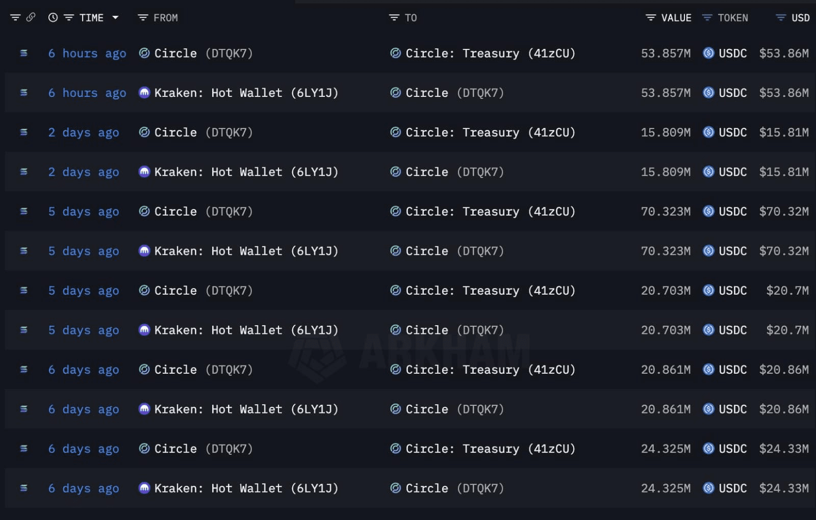 * Dompet Panas Kraken (6LY1J) mengirimkan jumlah besar ke dompet Circle (DTQK7).
