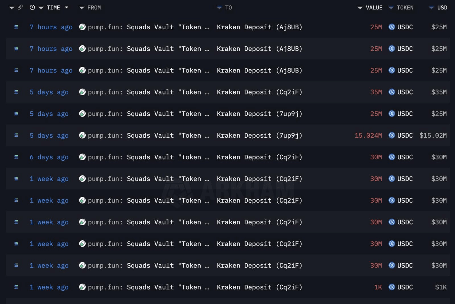 * pump.fun telah menyetor beberapa transaksi berturut-turut ke berbagai dompet deposit di Kraken.