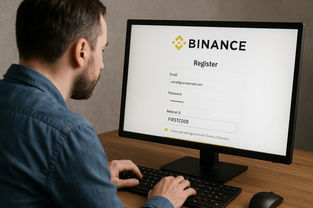 Menggunakan FIRSTCODE saat Anda mendaftar sangatlah sederhana. Buka aplikasi atau situs web Binance, mulai pendaftaran dengan alamat email atau nomor ponsel Anda dan cari kolom yang bertuliskan “ID Referral (opsional)” atau “kode referral”. Masukkan FIRSTCODE di sana dan konfirmasikan bahwa kode ditampilkan dengan benar. Kemudian ikuti langkah-langkah standar untuk setiap akun baru: