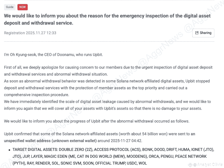 Solana kembali menjadi sorotan — bukan karena kecepatan, bukan karena inovasi, tetapi untuk bencana multimillion-dollar lainnya. Bursa terbesar di Korea Selatan, Upbit, baru saja mengonfirmasi pencurian ₩54 MILIAR KRW (~$36M) yang dialihkan langsung melalui jaringan Solana, dan seluruh pasar sedang terpuruk.
