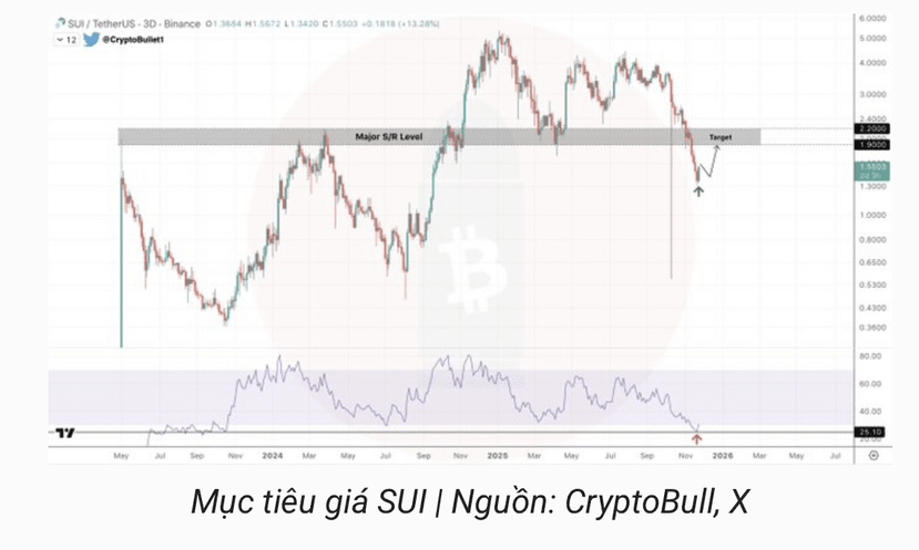 Tendangan ini juga terjadi tepat di bawah area resistensi/support besar yang telah membentuk tren lebih dari satu tahun. Jika kekuatan beli terus dipertahankan, target terdekat untuk SUI akan berada dalam kisaran 1,90–2,20 USD.