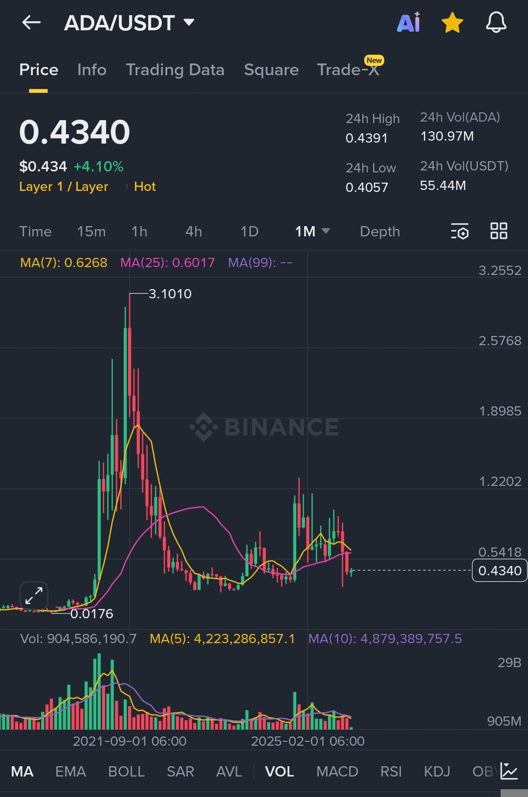Harga tertinggi Cardano (ADA) hingga saat ini adalah 3,10 dolar (sekitar 370 rupee), yang dicapai pada bulan September 2021.