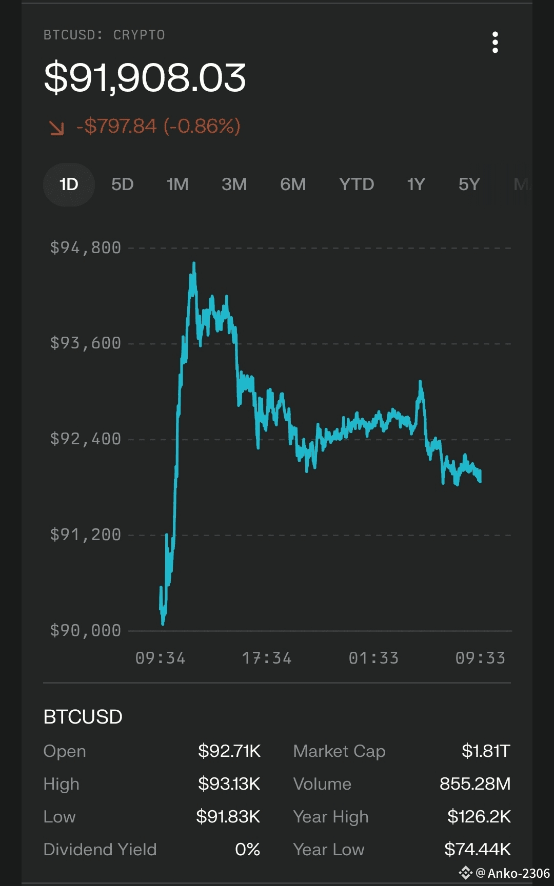 2025, the direction for Bitcoin (BTC) is Bearish.Bitcoin is currently trading around $92,126 – $92,700, positioning it significantly below its key long-term trend indicators. The price action suggests a corrective phase, having dropped approximately 22% over the last 100 days �.Key Technical Signals (Daily Timeframe)Trend Status: Downtrend. The price is trading below both the 50-day ($103,134) and 200-day ($103,809) Moving Averages (MA), which typically signals a sustained bearish market structure. Death Cross: The 50-day MA has crossed below the 200-day MA ($103,134 < $103,809), a classic bearish chart pattern known as a "Death Cross" that often indicates further downside potential. Momentum (RSI): The 14-day Relative Strength Index (RSI) is at 45.26, indicating weak momentum. It is in neutral territory but leaning bearish, suggesting that buyers have not yet stepped in with sufficient volume to reverse the trend.Support and Resistance LevelsSummary of IndicatorsMoving Averages: Strong Sell. Price is below the 5-day, 20-day, 50-day, and 100-day averages. Volatility: High. The Average True Range (ATR) is elevated (~4,400), indicating daily price swings of roughly 4-5% are common .Volume: Recent trading volume has been lower than average (approx. 9,000 vs 20-day avg of 12,000), suggesting a lack of conviction in the current consolidation .