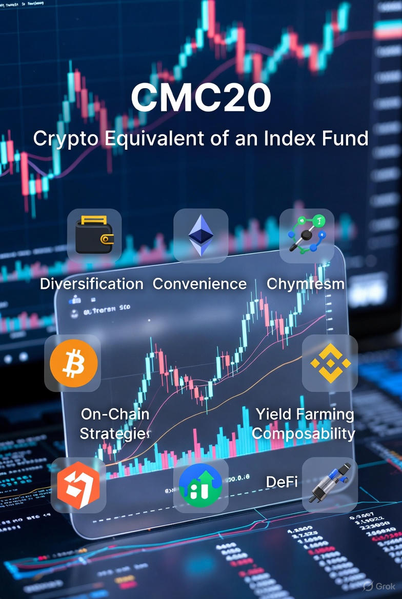 Singkatnya — CMC20 bertujuan untuk berfungsi sebagai “ekivalen kripto dari dana indeks” (mirip dalam semangat dengan sesuatu seperti S&P 500 dalam keuangan tradisional) tetapi sepenuhnya on-chain.