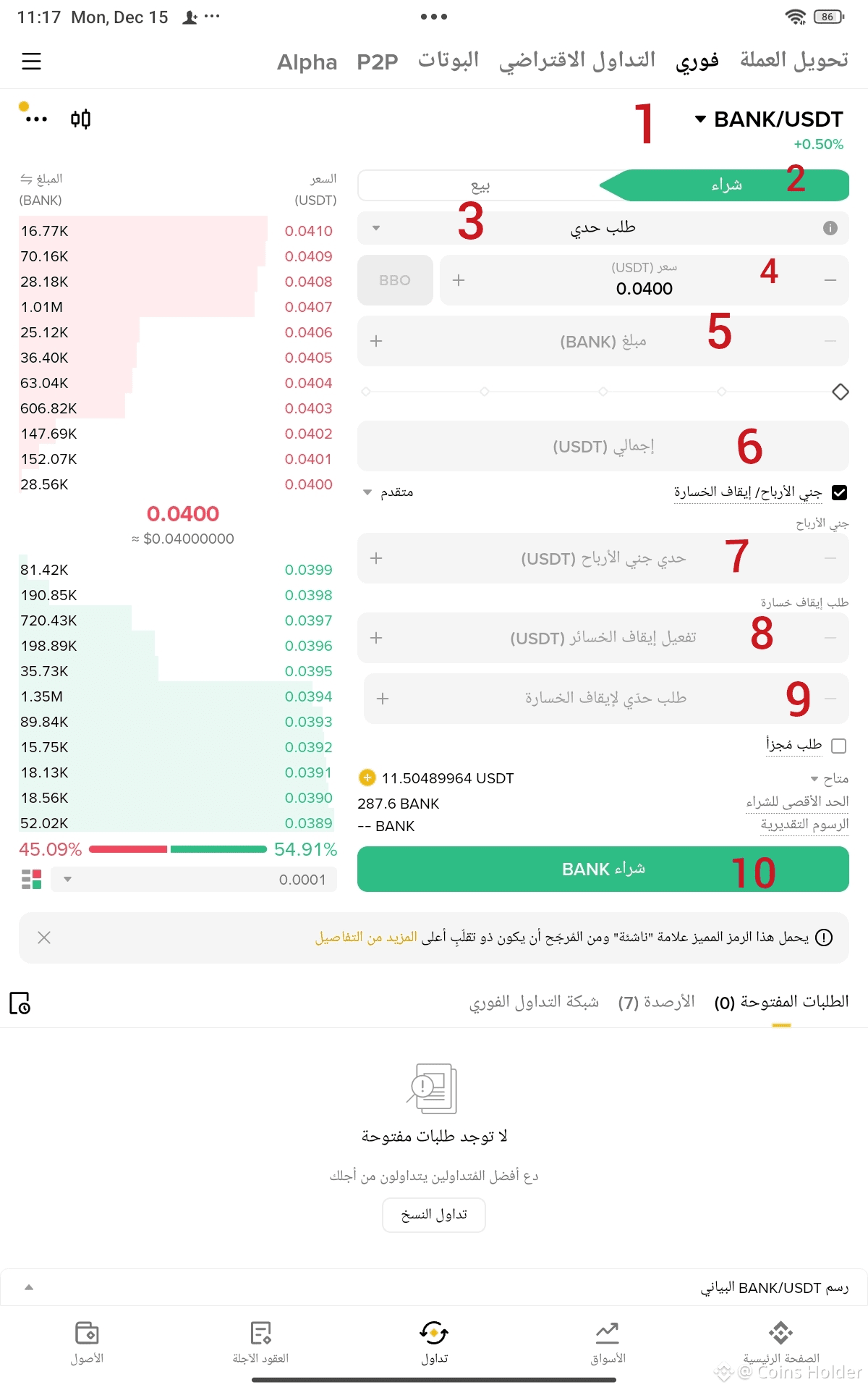 أول أمر لازم تفهمه صح هو: Limit Buy