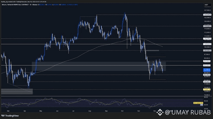 On the upside, $90,200 has now flipped into resistance, with $93,150 acting as the next upside objective only if that level is reclaimed with a strong close.