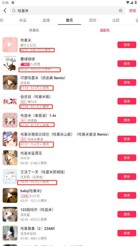 Masukkan 'Hachimi' di kotak pencarian aplikasi TikTok, pilih tab musik, Anda akan mendapatkan dua jenis: musik dan efek suara. Kita fokus pada efek suara dan ambil data 5 teratas: