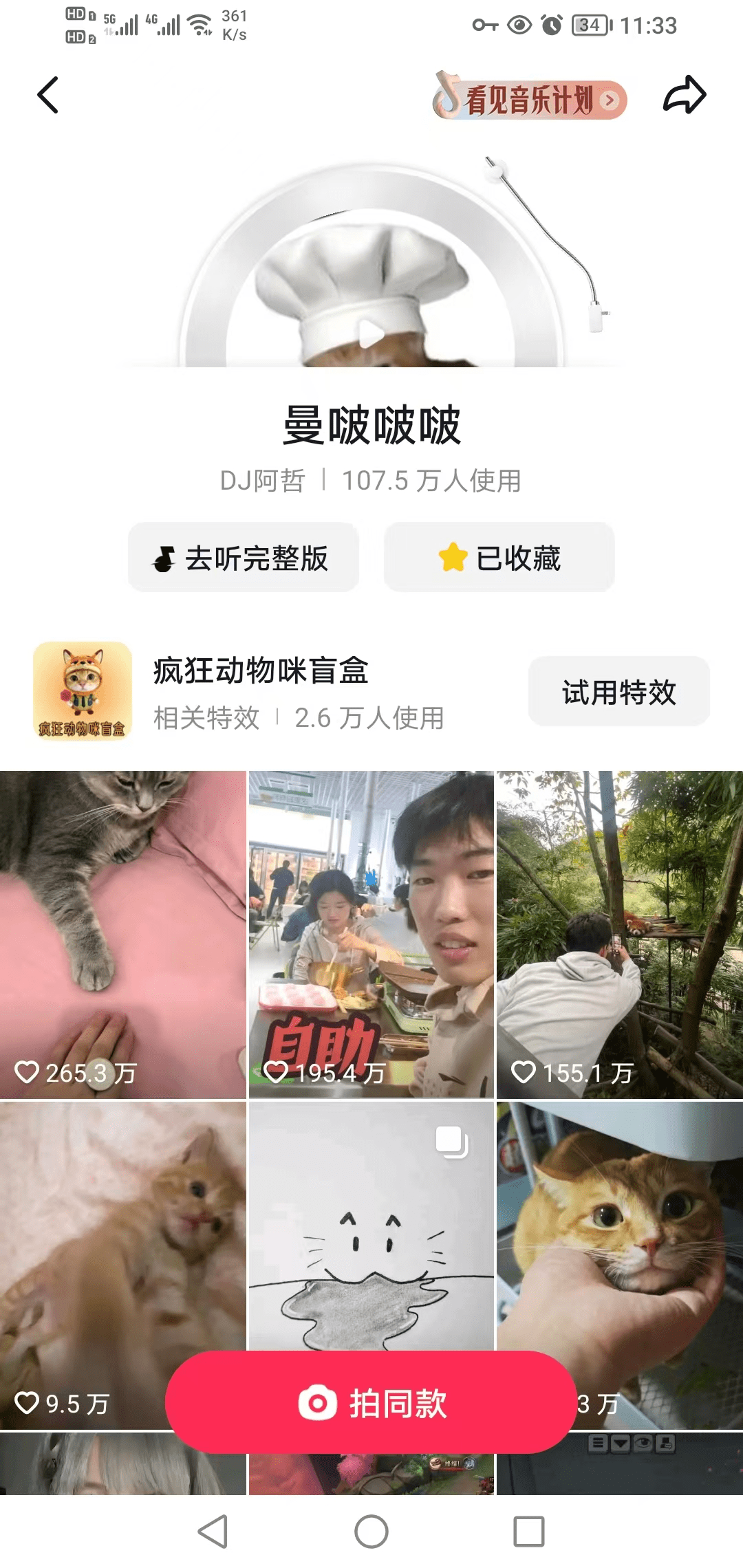 Di bilah pencarian aplikasi Douyin, ketik "Hachimi," lalu pilih tab musik. Ada dua jenis: musik dan efek suara. Kita fokus pada efek suara dan ambil data 5 teratas: