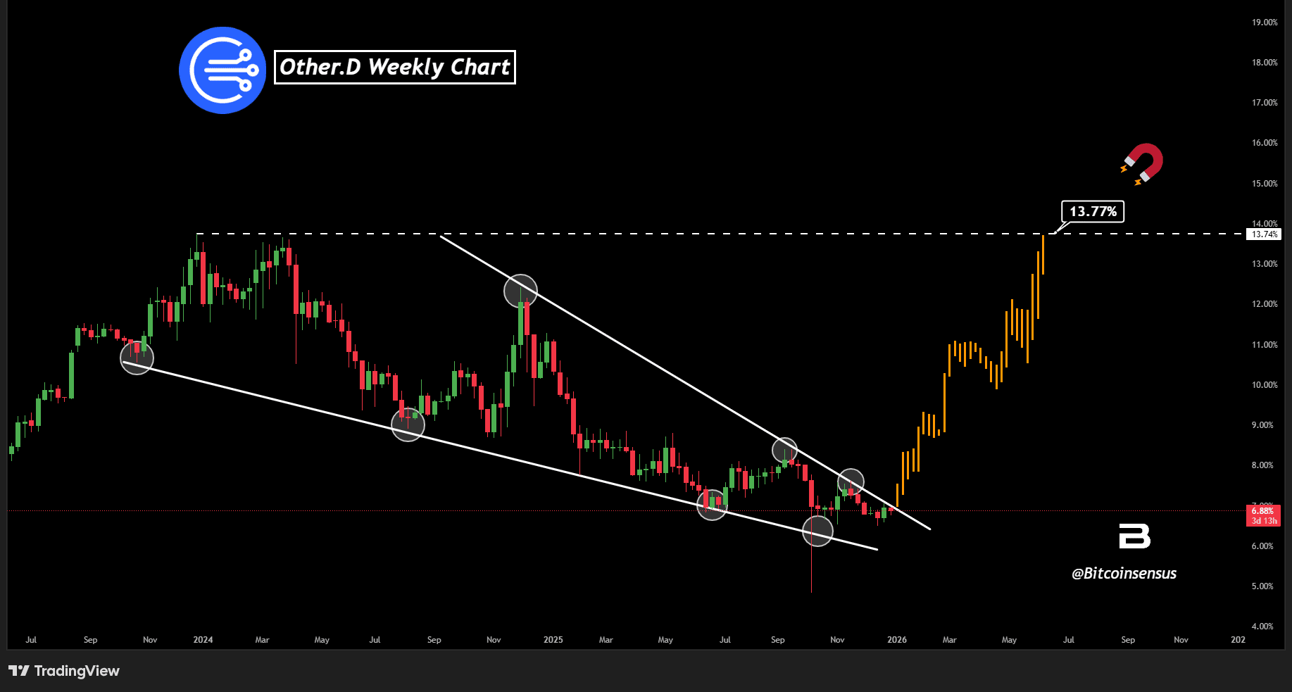 Mengamati level 13.77% sebagai magnet upside kunci