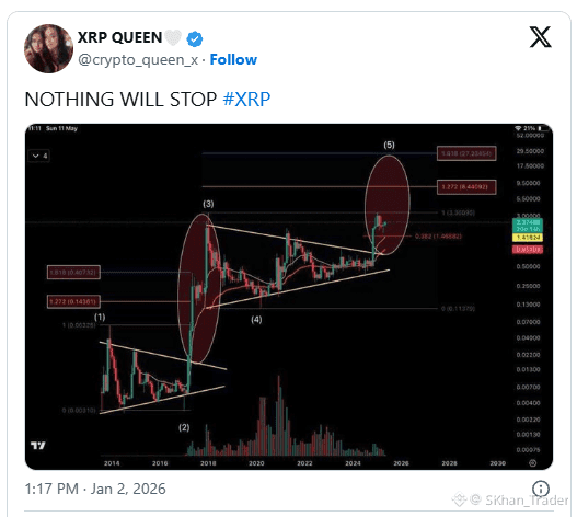 An analyst known as XRP Queen (@crypto_queen_x) shared a long-term XRP chart and confidently said: “NOTHING WILL STOP XRP.”💪
