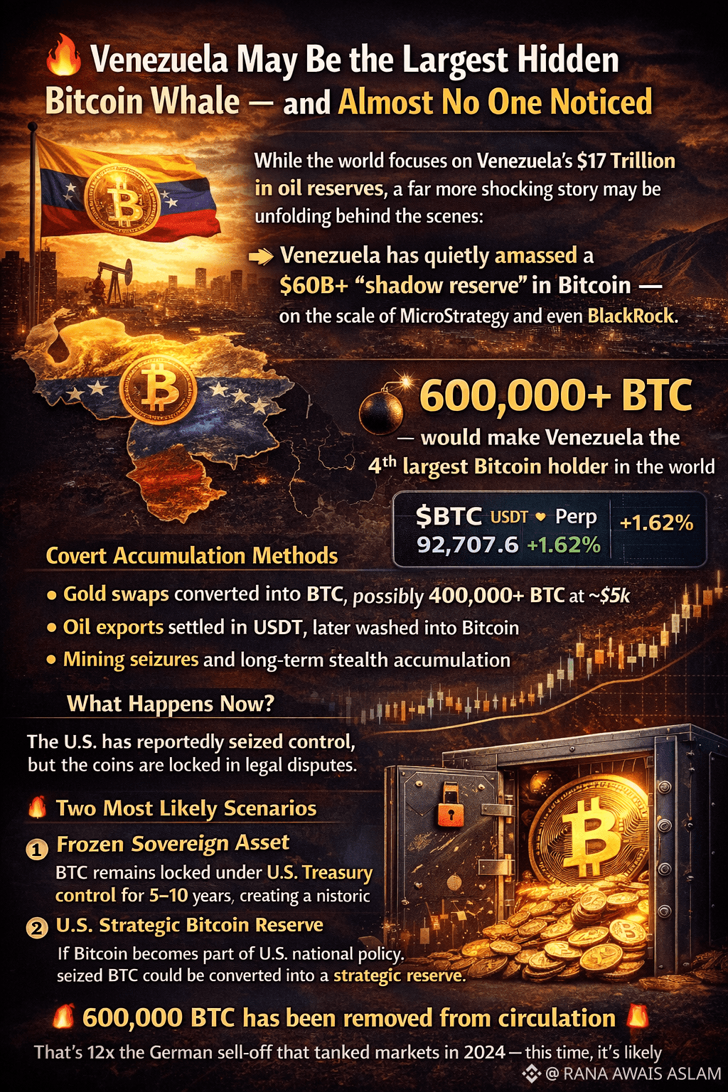 👉 Venezuela is believed to have quietly accumulated a $60B+ “shadow reserve” in Bitcoin — putting it in the same league as MicroStrategy and even BlackRock.