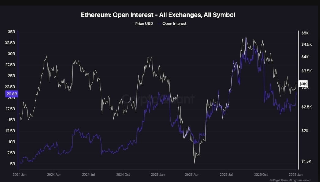 Minat terbuka Ethereum kembali naik setelah penurunan tajam selama berbulan-bulan, menunjukkan posisi panjang baru sedang ditambahkan. Ini mencerminkan optimisme baru di pasar derivatif, tetapi harga belum mengikuti dengan kekuatan yang sama.