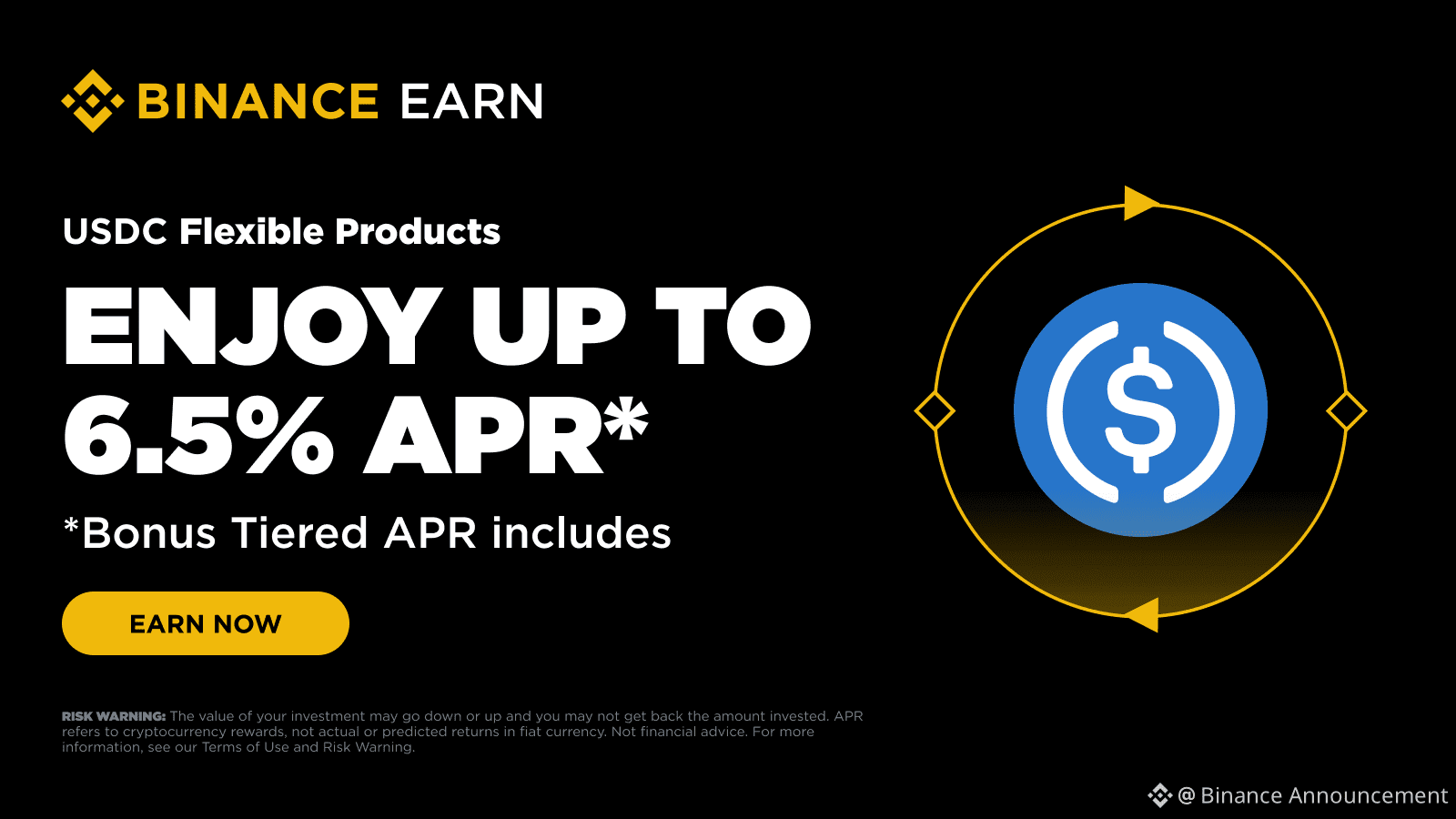 Binance Earn dengan bangga mengumumkan promosi untuk USDC Simple Earn Produk Fleksibel! Selama Periode Promosi, pengguna yang berlangganan USDC Produk Fleksibel dapat menikmati hingga 6,5% APR, termasuk APR Bertingkat Bonus yang eksklusif di atas reward APR Waktu Nyata.