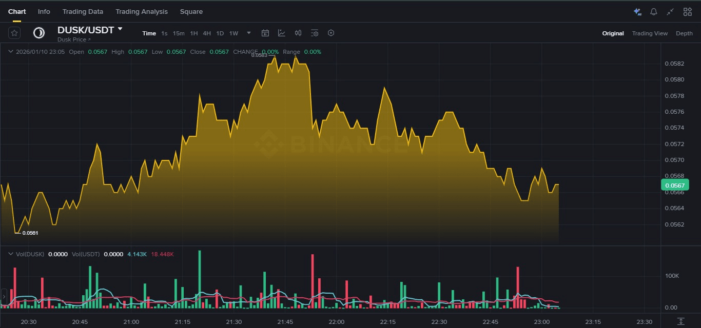 Melihat grafiknya, perkembangan ini terjadi dalam latar belakang harga yang kompleks. Pasangan DUSK/USDT, seperti banyak aset yang lahir di siklus sebelumnya, saat ini diperdagangkan dalam bayangan rekor tertingginya. Saat ini sekitar 0,057 dolar AS, token ini turun sekitar 95% dari puncaknya 1,17 dolar AS pada akhir 2021. Grafik harian menunjukkan pasar yang menemukan dukungan sekitar 0,052 dolar AS minggu ini sebelum bergerak naik, dengan volume 24 jam sering kali mewakili sebagian besar kapitalisasi pasar 27,8 juta dolar AS. Rasio volume/kapitalisasi yang tinggi, hampir 20%, menunjukkan token yang sebagian besar diperdagangkan, bukan mati suri. Dari sudut pandang teknis, perilaku harga menunjukkan pasar yang masih mencari keseimbangan setelah penurunan panjang, dengan perkembangan terbaru seperti jembatan berpotensi menjadi pemicu penilaian ulang, bukan lonjakan harga instan.
