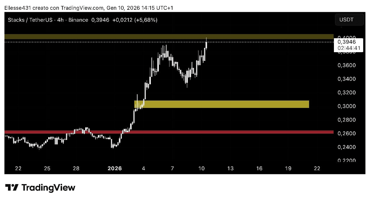 Saat STX naik lebih tinggi, kini sedang menguji level resistensi historis yang sebelumnya berfungsi sebagai titik penolakan. Observasi teknikal utama meliputi:
