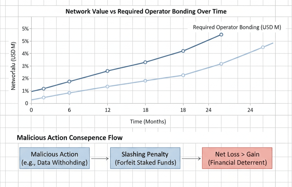 Risiko kritis tersebar melalui kontribusi pool asuransi operator. Walrus memungkinkan penyedia yang menggabungkan premi membentuk cakupan bersama terhadap kegagalan perangkat keras yang berkorelasi. Kerangka berbagi risiko ini memperkuat ketahanan jaringan dalam kesiapan menghadapi kebangkrutan operator individu yang meluas melalui ketergantungan infrastruktur tunggal. Kegagalan sistem jauh lebih kecil kemungkinannya dengan diversifikasi ekonomi.