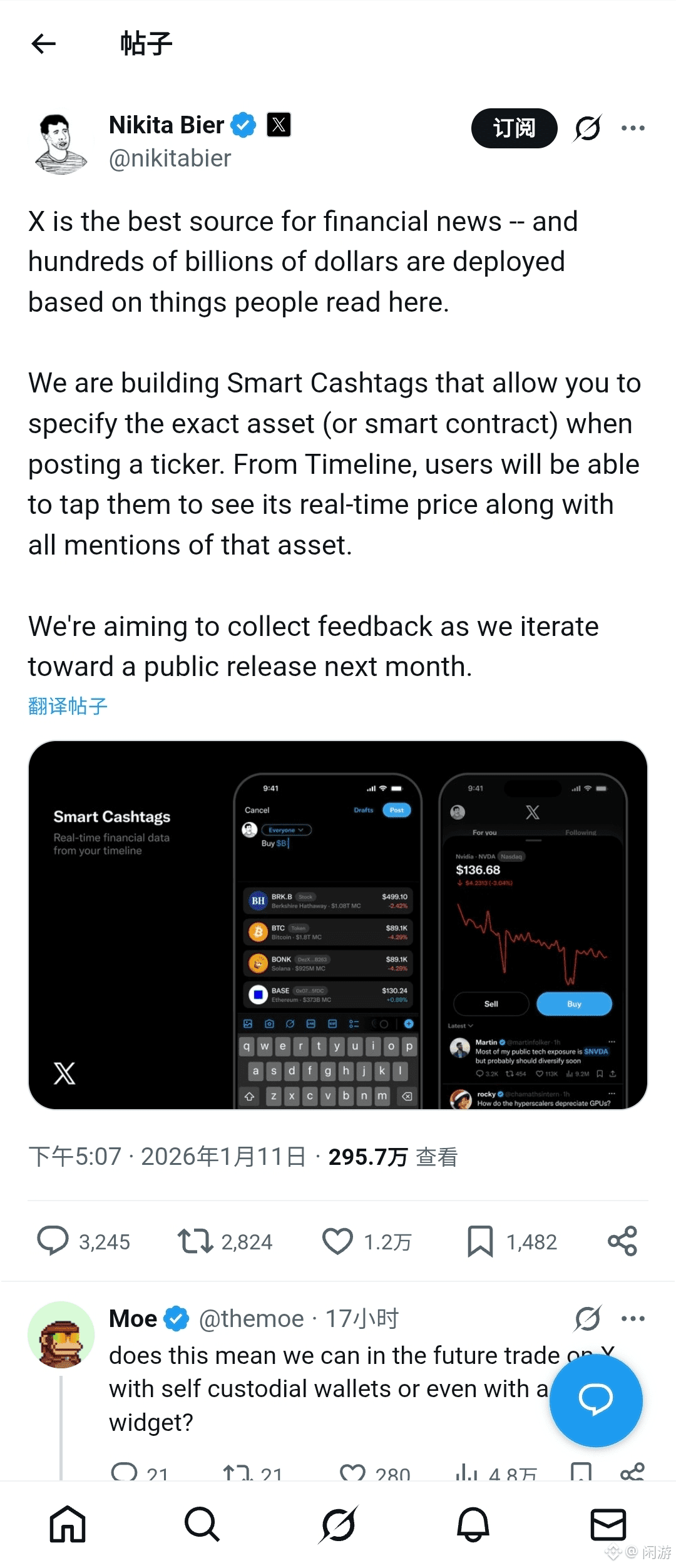 根据最新的动态,X 的产品负责人 Nikita Bier 透露了一项名为 “智能现金标签” (Smart Cashtags) 的重磅新功能。这不仅仅是一个简单的标签升级,它预示着 X 可能正在从一个“市场评论和新闻的集散地”,转型为一个集“发现、追踪甚至交易”于一体的金融门户。