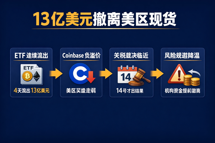 Dalam 4 hari perdagangan terakhir, ETF BTC dan ETH tunai AS mengalami arus keluar bersih secara beruntun, dengan total skala sekitar 1,3 miliar dolar AS.