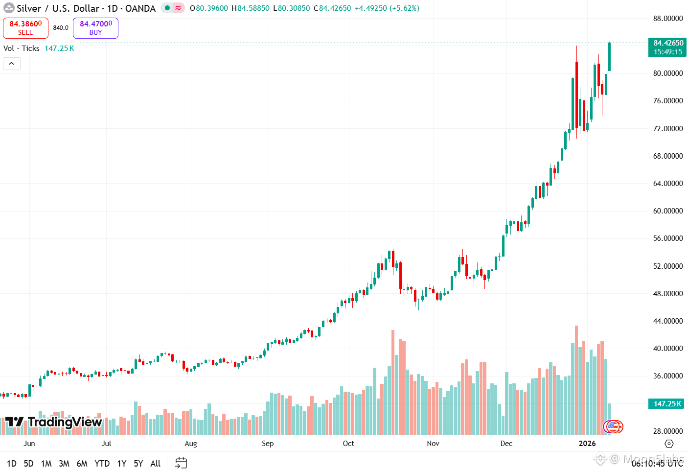 In early Monday trading, precious metals experienced a sharp rally. Spot gold approached $4,600 per ounce, while silver broke through a record $84, according to TradingView. This surge reflects the growing demand for safe-haven assets during times of global uncertainty.