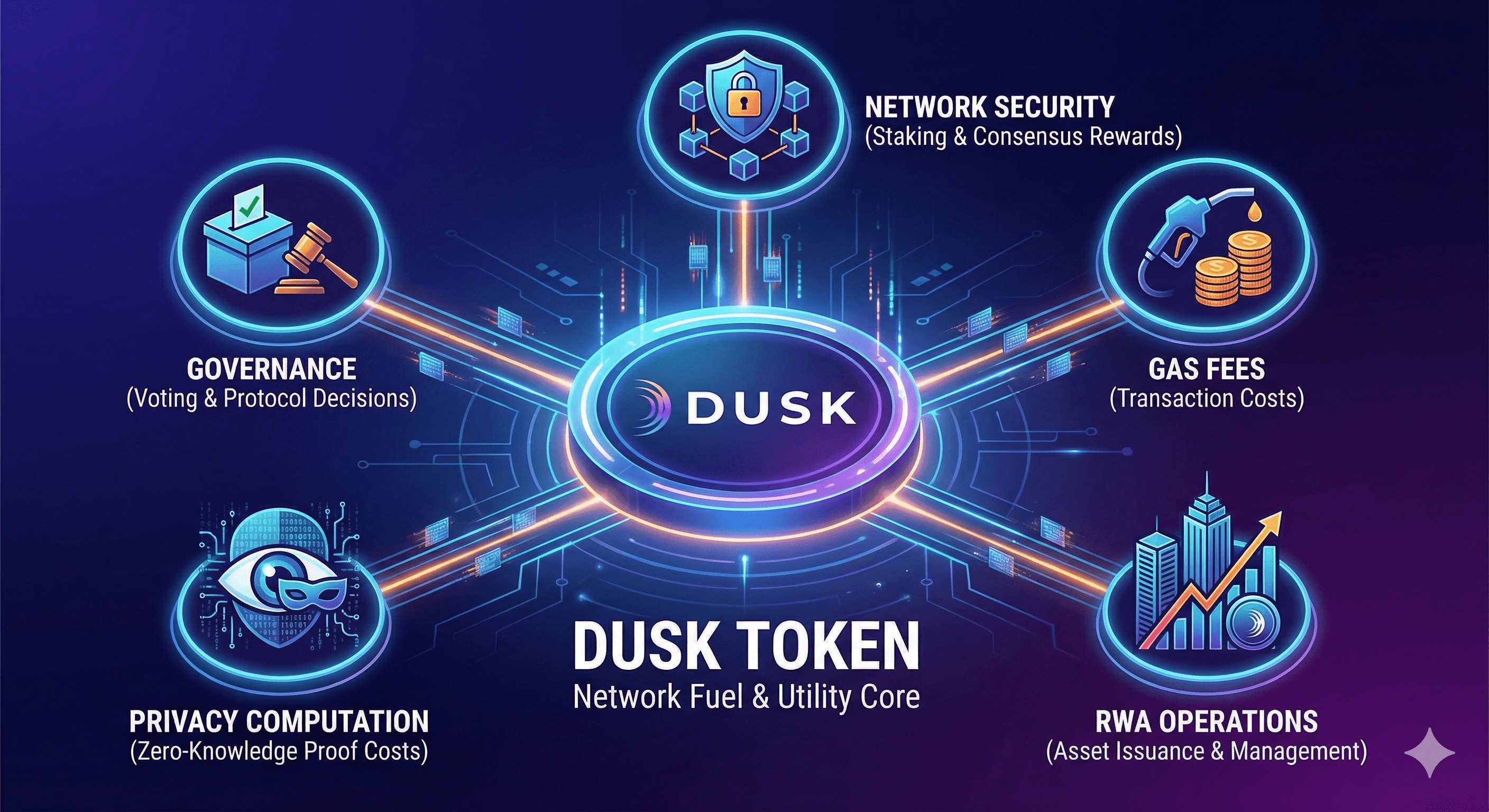 Token DUSK asli menjadi dasar model ekonomi dan operasional jaringan ini: