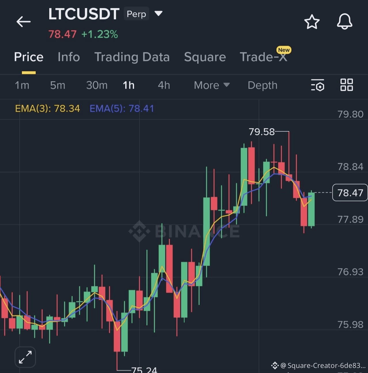 لدخول صفقات شراء عند LTC : أفضل دخول حول 77.2-77.5 حيث يلامس مستوى الدعم ويتماشى مع المتوسط المتحرك 20. إذا شعرت بالجرأة، احصل عليه الآن عند 78.49 لكن مع وقف خسارة ضيق جدًا.