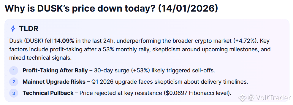 Short-term traders were drawn to $DUSK the ~53% increase over the past 30 days, and they probably booked profits as the momentum for altcoins as a whole waned. The pullback was exacerbated by decreased liquidity, and DUSK has a history of sharp corrections following strong rallies, so this move is both technically and behaviorally consistent.