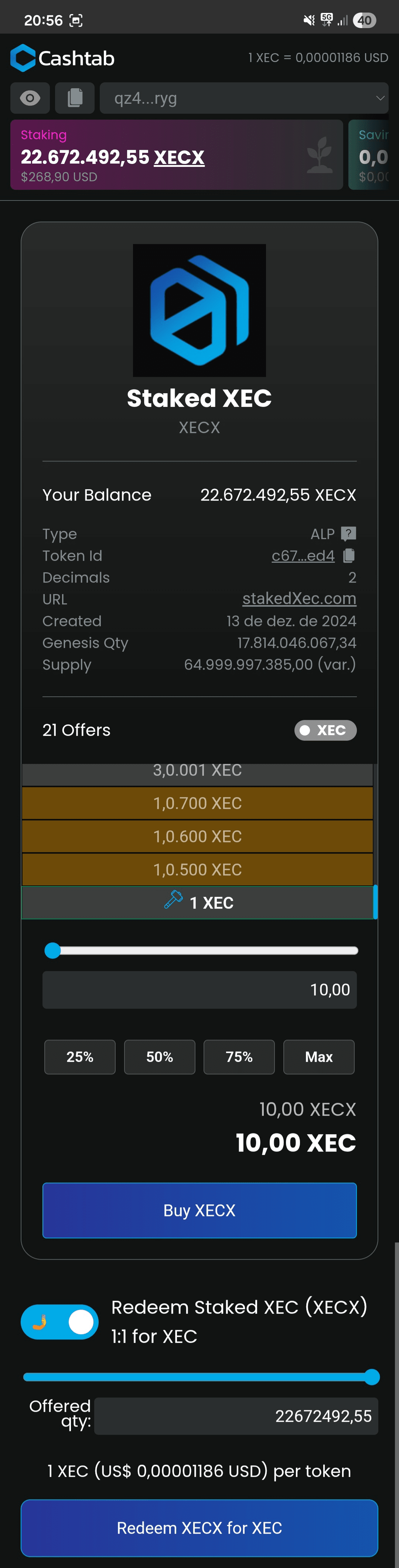 (catatan: saya percaya jumlah XECX minimum untuk menerima hadiah staking adalah 1.000 XECX, yang merupakan penghalang masuk yang sangat rendah).