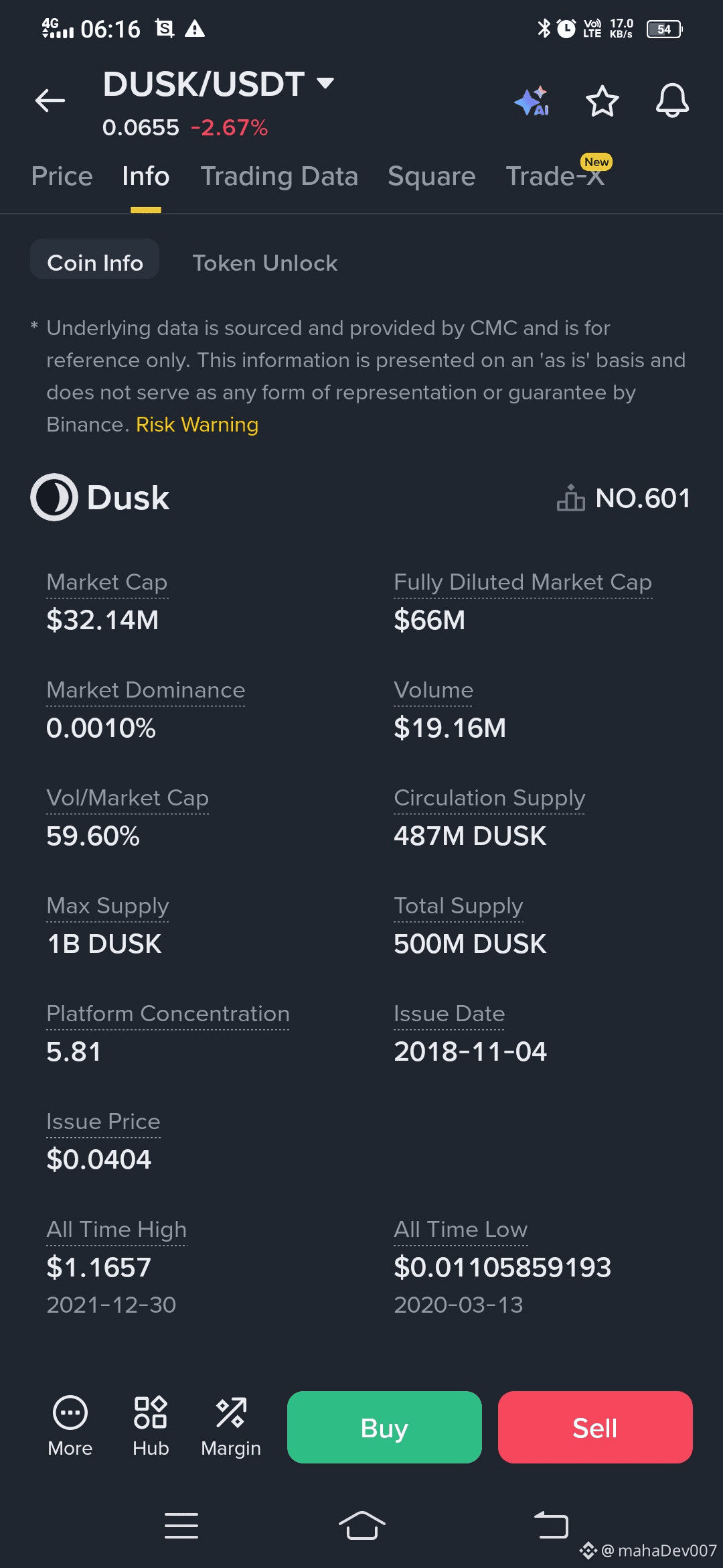 At the time of writing, DUSK is trading around $0.065, showing short-term weakness, yet the broader structure tells a more nuanced story.
