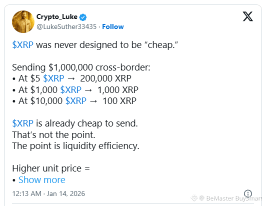 Crypto_Luke’s insights challenge the common perception of “cheap” tokens. XRP’s worth emerges from liquidity efficiency, risk reduction, and performance at scale, not nominal token price.