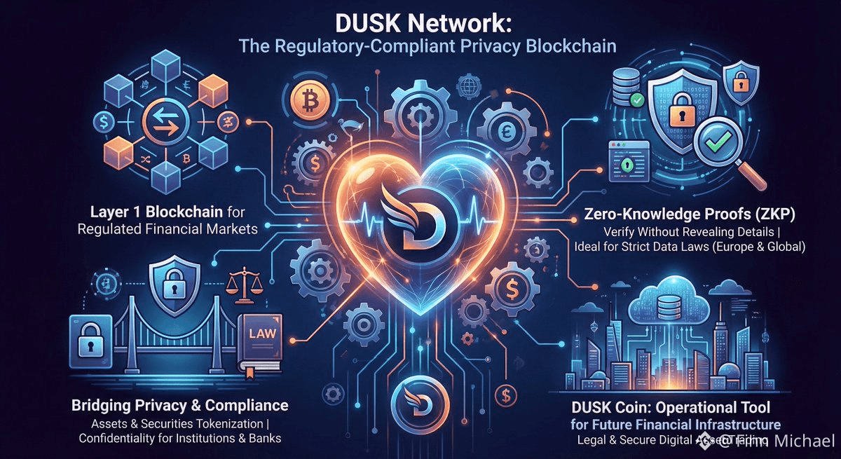 At its core, Dusk is a Layer 1 blockchain engineered for regulated and privacy-focused financial infrastructure. This single design choice sets it apart from most Web3 networks. While many chains optimize for speed or composability, Dusk optimizes for trust. Trust between users and institutions. Trust between privacy and transparency. Trust between innovation and law.