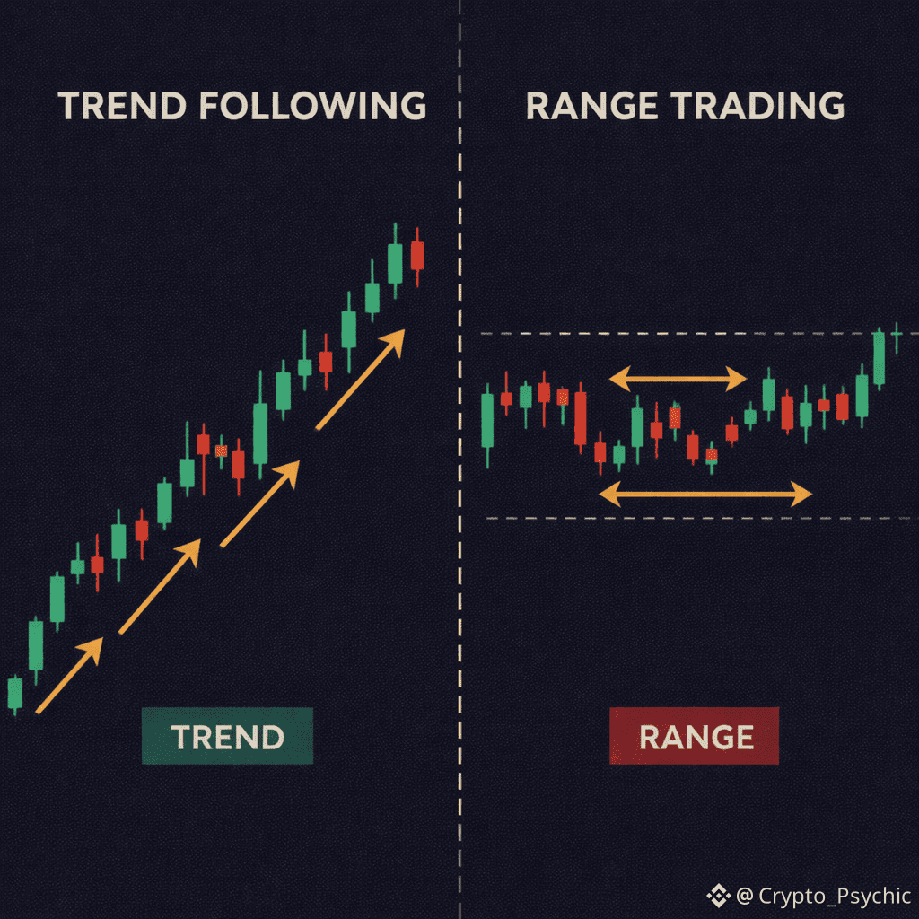 One of the most common reasons traders struggle is not because they lack knowledge, but because they apply the right strategy in the wrong environment. Markets do not behave the same way all the time. They alternate between expansion and consolidation, momentum and balance. Trend following and range trading are not competing strategies — they are responses to different market conditions. Understanding when to use each is a defining skill in long-term trading performance.