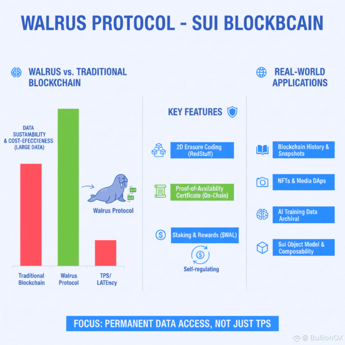 After I had started doing some research on the subject of decentralized storage solutions a few years ago, I quickly found out that the majority of the conversations in the crypto world are about speed and scalability how many transactions per second a blockchain could throughput. Although that is certainly crucial to payments and DeFi, a more subtle, but equally significant issue that I was attracted to is the need to make big, unstructured data permanently available without costly access and centralizing needs. That is why I took time to read about @Walrus 🦭/acc on Sui, and to my mind it is a conscious change in priority that the industry might use.