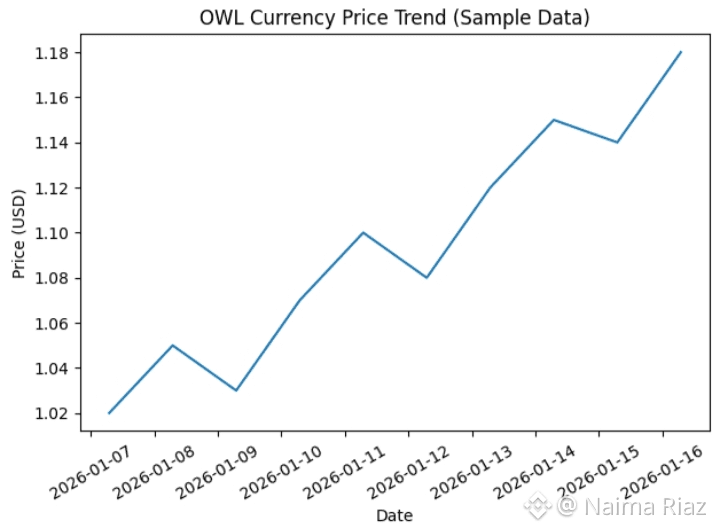 Like most digital currencies, OWL’s value changes according to supply, demand, and investor confidence. The chart above illustrates a sample trend of OWL price movement over recent days, showing gradual growth with small corrections—typical behavior for a developing cryptocurrency.