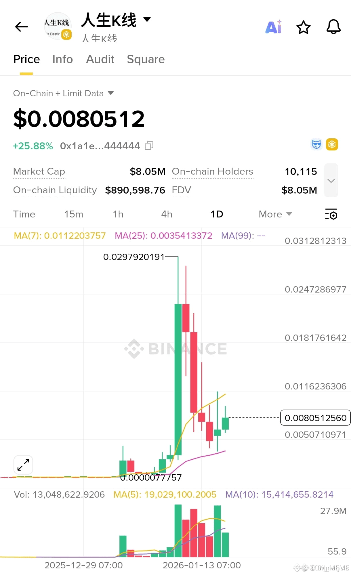在强烈曝光(Alpha关注、社交热潮、交易量激增)后,价格几乎垂直上升。这是由FOMO、快速买家和动量交易者推动的。
