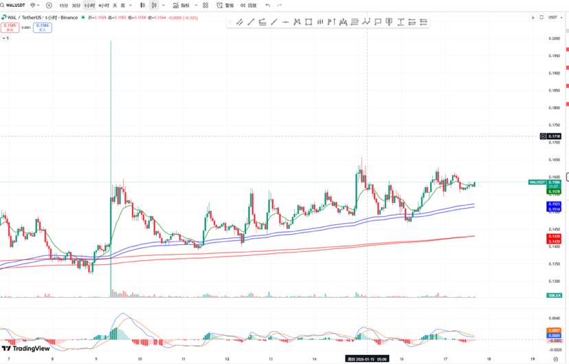 Dari sudut pandang perdagangan, $WAL bukanlah aset yang bersifat emosional, pergerakan jangka pendek lebih dipengaruhi oleh struktur teknis dan likuiditas. Saya pribadi lebih fokus pada perubahan struktur di level 1 jam, terutama keterpaduan antara harga dan saluran tren, serta indikator momentum. Pada tahap saat ini, jika tidak ada terobosan volume yang jelas, lebih baik bersabar menunggu sinyal, daripada mengejar kenaikan atau penurunan. Untuk jangka pendek, $WAL lebih mirip dengan menunggu konfirmasi dan membangun struktur, bukan berusaha mengambil langkah pertama berdasarkan emosi.