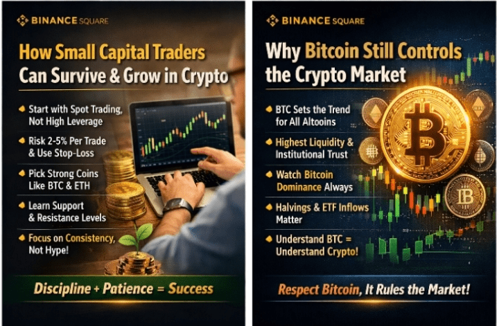 $BTC Banyak trader baru berpikir bahwa Anda membutuhkan uang besar untuk berhasil dalam crypto โ ini adalah salah satu mitos terbesar. Bahkan dengan saldo kecil seperti $10โ$50, kekuatan sejati terletak pada disiplin, kesabaran, dan strategi, bukan keberuntungan. Mulailah dengan fokus pada perdagangan spot, bukan futures dengan leverage tinggi. Pilih koin yang kuat dengan kasus penggunaan nyata seperti BTC, ETH, atau altcoin solid selama penurunan pasar. Manajemen risiko adalah segalanya: jangan pernah mengambil risiko lebih dari 2โ5% per perdagangan, dan selalu gunakan stop-loss. Hindari overtrading; satu perdagangan yang baik lebih baik daripada sepuluh perdagangan emosional. Pelajari konsep dasar seperti support, resistance, dan struktur pasar. Yang terpenting, perlakukan crypto sebagai keterampilan jangka panjang, bukan skema cepat kaya. Konsistensi mengalahkan hype setiap saat.