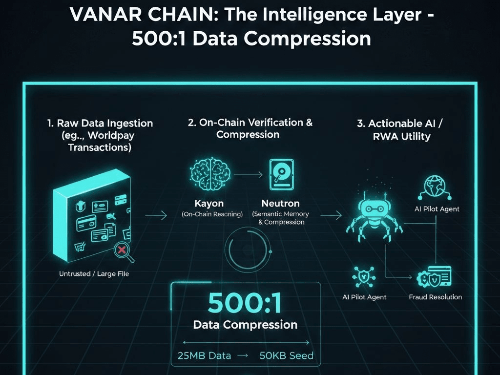 Metrik yang menghentikan saya dalam jejak adalah rasio kompresi data 500:1. Ini memungkinkan 25MB data disimpan sebagai "Neutron Seed" 50KB tanpa kehilangan bukti kriptografis. Ini menghilangkan risiko "off-chain" dari penyimpanan pihak ketiga seperti IPFS, titik kegagalan historis untuk aplikasi perusahaan. Kami sudah melihat ini dalam kenyataan: lihat kemitraan Worldpay yang menggunakan biji ini untuk menyelesaikan sengketa transaksi multi-miliar dolar.