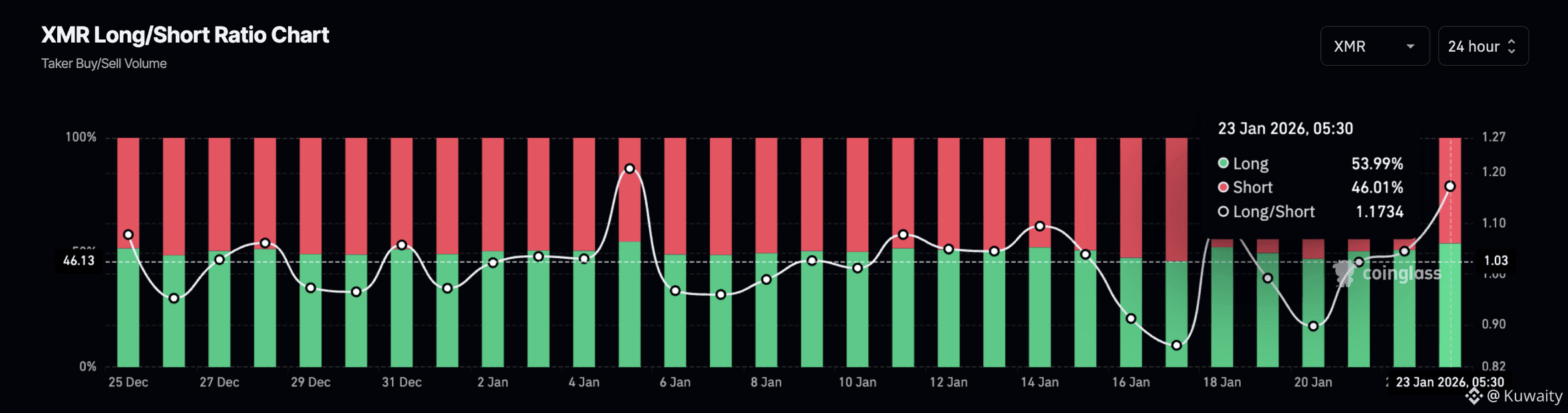 رسم بياني لنسبة المراكز الطويلة/القصيرة لعقود XMR. المصدر: CoinGlass