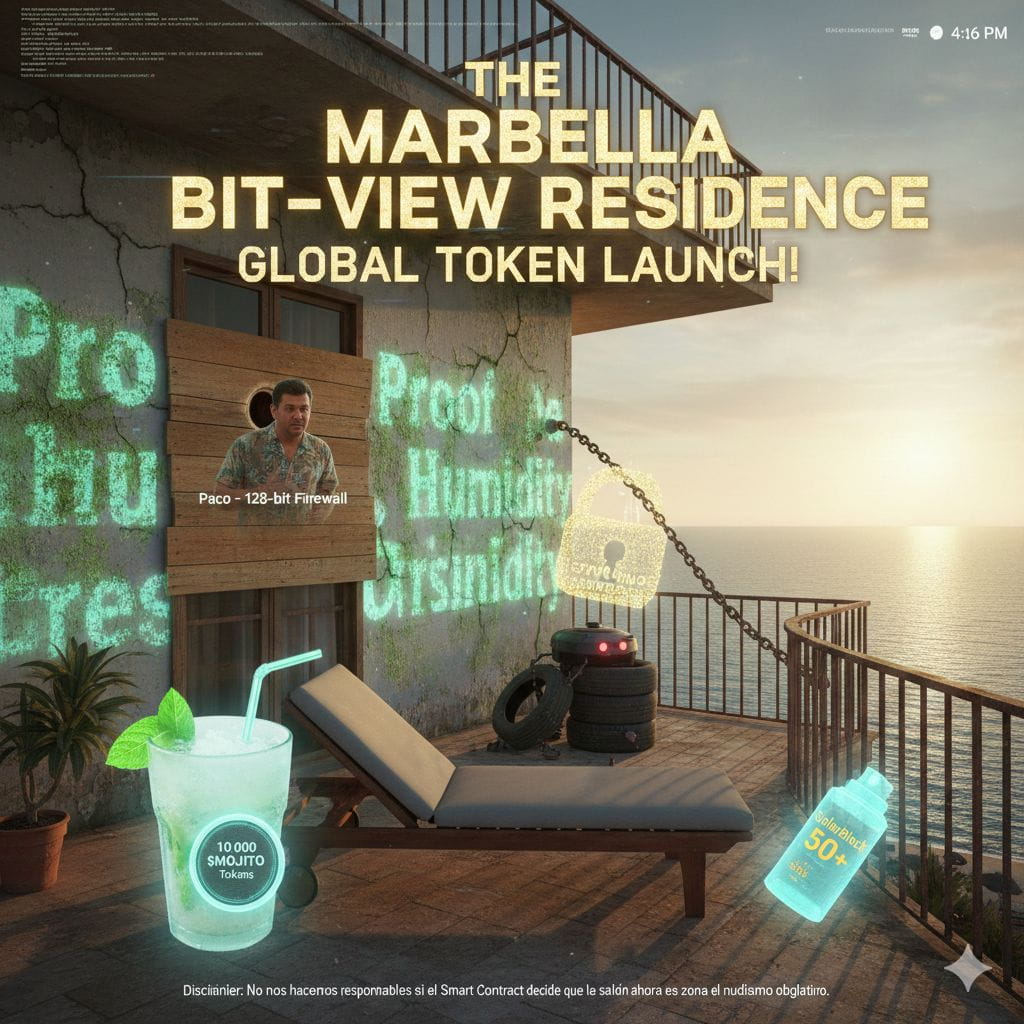 Metaverso Híbrido: Si no puedes viajar a Marbella, puedes mirar la webcam del salón 24/7. Es como el "Gran Hermano" pero solo sale un robot aspirador chocándose con los muebles. ¡High Tech!