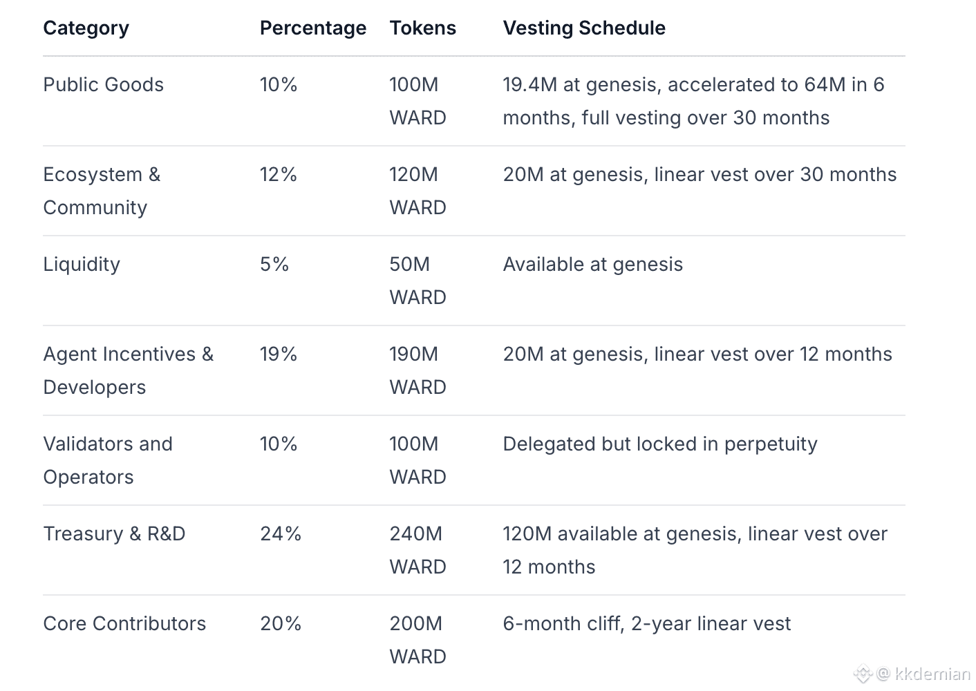 Based on available data, the WARD token supply structure exhibits the following characteristics: