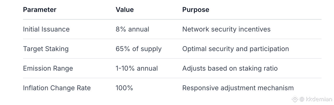 Economic ParameterTarget ValueAdjustment MechanismTarget Staking Rate65% of supplyBalances security and participationAnnual Inflation Rate1-10%Dynamically adjusted based on staking rateInflation Adjustment Rate100%Rapid response mechanismCommunity Tax3% of protocol feesAllocated to token burns and ecosystem development