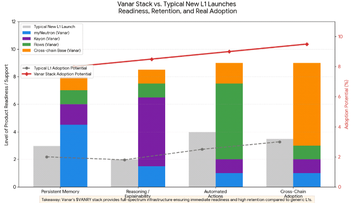 Singkatnya, Vanar Chain tidak hanya siap untuk era AI — ia menetapkan standar. VANRY mendukung adopsi di beberapa level ekosistem, menghubungkan pengguna, pengembang, dan bisnis melalui produk yang berfungsi dalam praktik, bukan hanya dalam teori. Peluncuran baru L1 harus menawarkan lebih dari sekadar kecepatan; mereka harus membuktikan kesiapan, kemudahan penggunaan, dan retensi. Vanar melakukan ini hari ini, menjadikannya platform untuk penggunaan nyata Web3, siap untuk penskalaan dan mempertahankan keterlibatan.