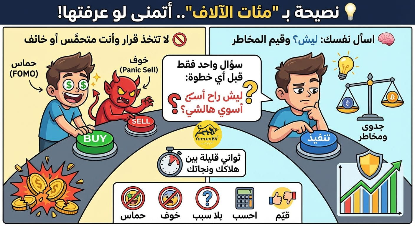 تذكر دائماً.. اللحظة التي تفصل بين نجاحك وهلاكك هي الثواني التي تسبق "ضغطة الزر". اسأل نفسك "لماذا؟" قبل فوات الأوان.