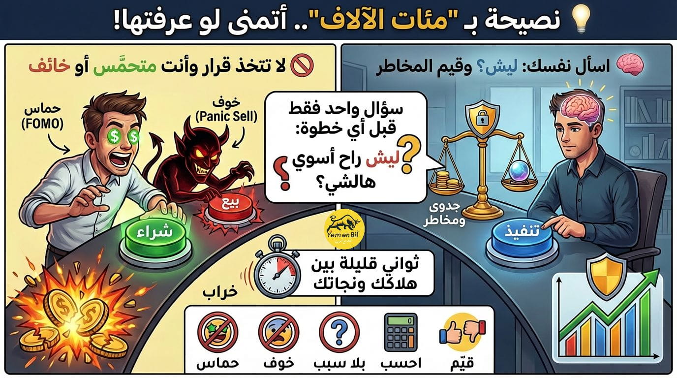 هل تساءلت يوماً لماذا تشتري في القمة وتبيع عند القاع؟ السر ليس في حظك السيئ، بل في الـ 30 ثانية التي تسبق ضغطة الزر