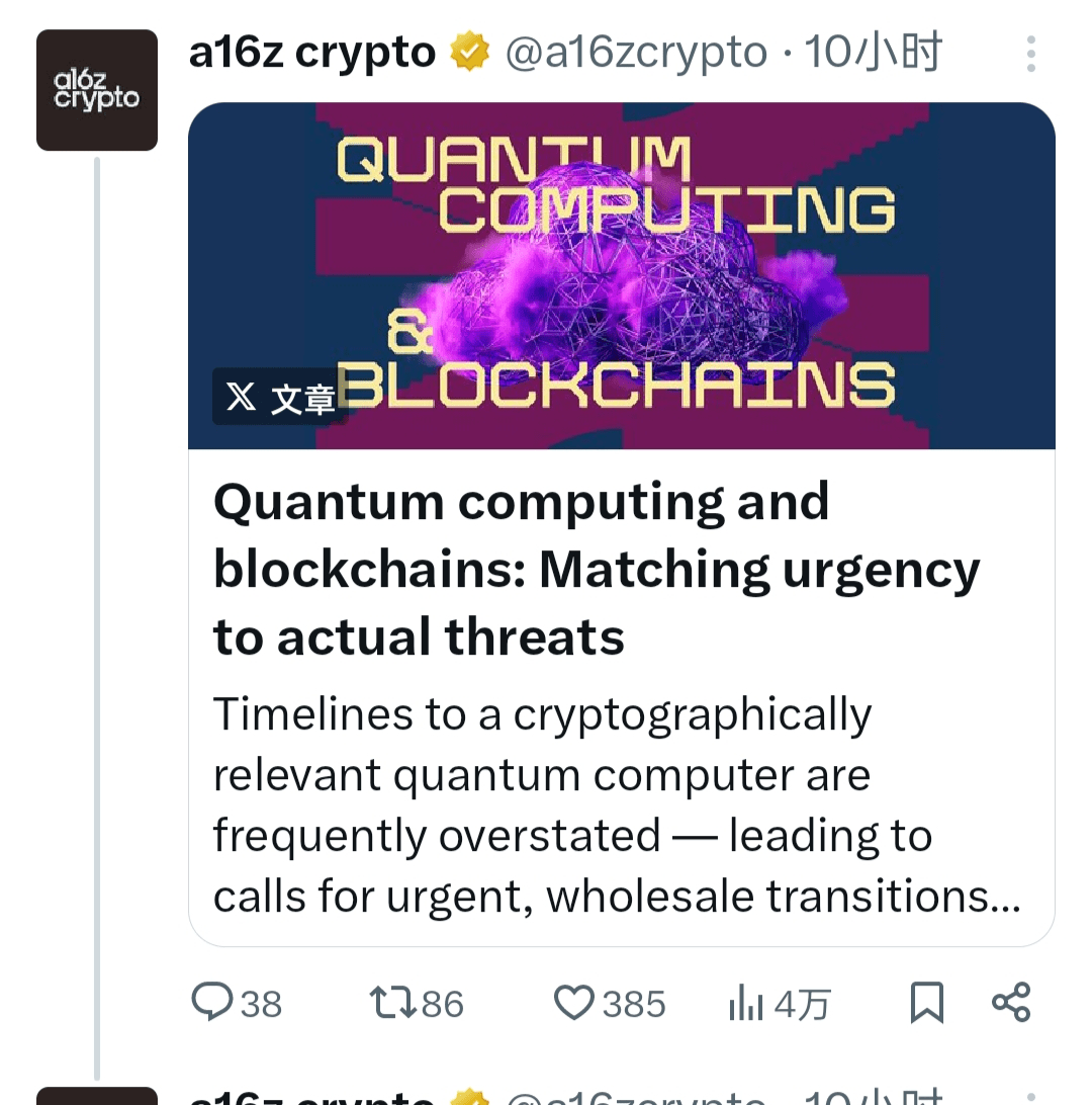 Karena kunci privat dompet saat ini, tanda tangan di blockchain, komunikasi jaringan, sebagian besar dibangun di atas dasar kriptografi tradisional. Hampir tidak mungkin dipecahkan di komputer biasa, tetapi dalam model kuantum mungkin dipercepat secara signifikan. PQC dapat berjalan tanpa komputer kuantum, dapat langsung diintegrasikan ke dalam sistem yang ada, dengan satu tujuan: membuat serangan kuantum di masa depan "tidak efektif". a16z juga menunjukkan satu poin kunci: blockchain tidak menghadapi risiko tunggal, tetapi masalah keamanan multi-lapis—enkripsi komunikasi adalah satu lapisan, tanda tangan digital adalah lapisan lainnya. Rantai yang berbeda, arsitektur yang berbeda, memerlukan jalur peningkatan yang berbeda. Dari perspektif yang lebih makro, ini sebenarnya sedang membentuk kembali logika kompetisi Web3: di masa lalu, yang diperebutkan adalah kecepatan, ekosistem, narasi;