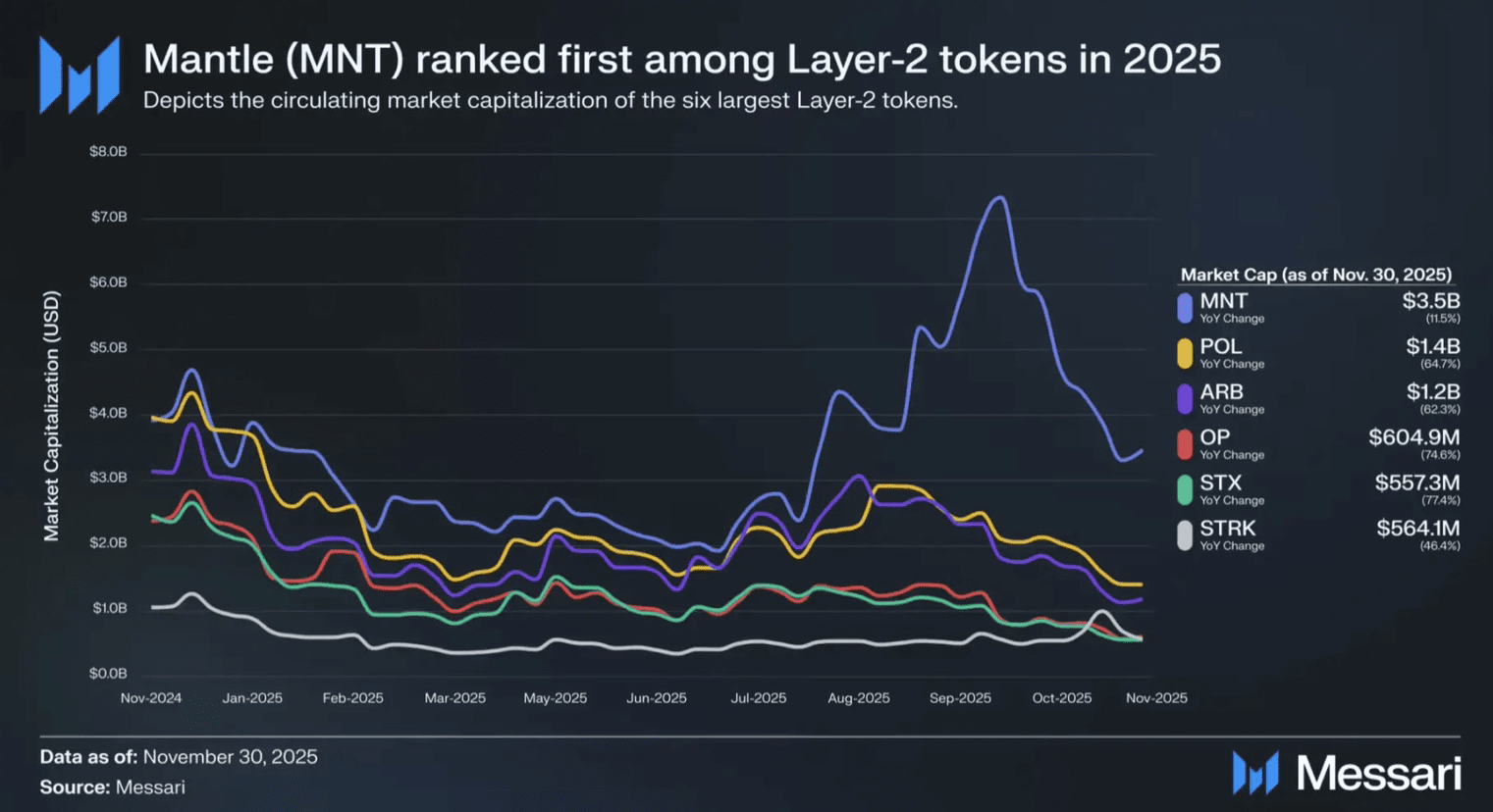 Namun, ironi ini tajam. Sementara L2 menyerap aktivitas, token asli mereka sendiri menderita. Rata-rata, token tata kelola Layer 2 kehilangan lebih dari 50% nilainya tahun ini. Pesan pasar sangat jelas: narasi P/E tinggi tanpa arus kas yang kredibel tidak lagi dapat diterima. 'meta pendapatan' telah tiba, dan teknologi saja tidak lagi cukup.